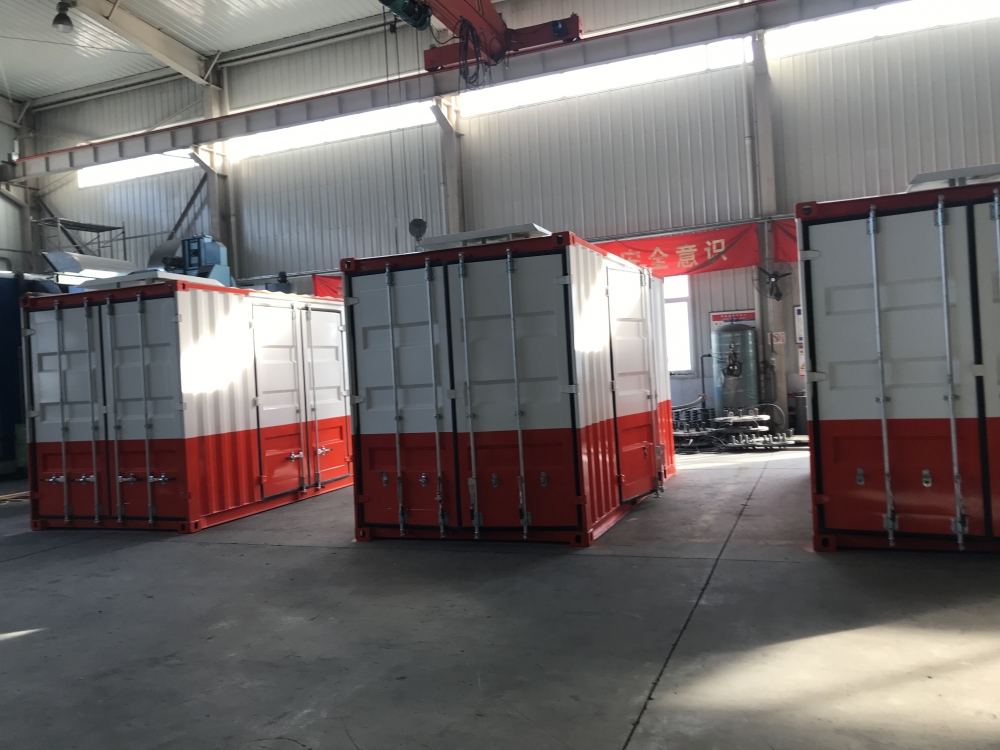 集裝箱內(nèi)各部件布置合理,空壓機(jī)風(fēng)冷氣體沿風(fēng)道排出箱外、防爆風(fēng)機(jī)強(qiáng)力通風(fēng),有效降低箱內(nèi)溫度。內(nèi)部設(shè)兩個